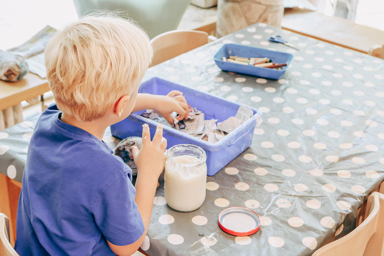 - Freispielzeit, gleitende Brotzeit und verschiedene Angebote und Aktivitäten sowie Vorschulprogramm, z.B. Turnen, Werken, kreatives Gestalten, verschiedene Projekte, kleinere Ausflüge